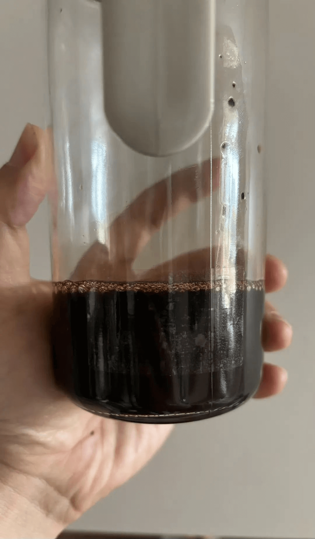 第二张图片则展示了同一个瓶子,但这次瓶子里装满了深色的液体,看起来像是咖啡或者其他深色饮料,而不是陈醋。这种反差让人感到意外和搞笑。