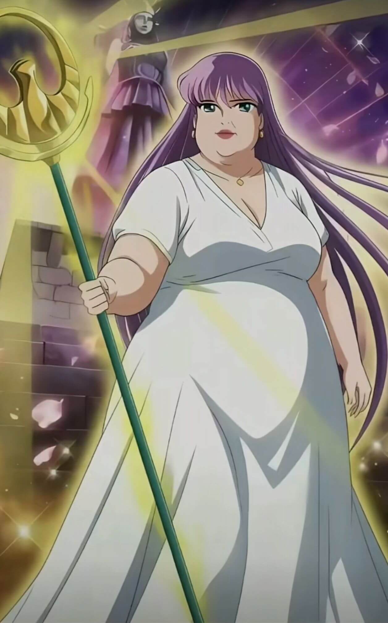第五张图是一位女性角色,她原本可能是个优雅的女神或魔法师,但在画面中却变得非常丰满,手持权杖,神情依旧庄严。这种“神圣形象”与“发福身材”的结合,打破了人们对“女神”必须苗条的刻板印象,反而显得可爱又搞笑。