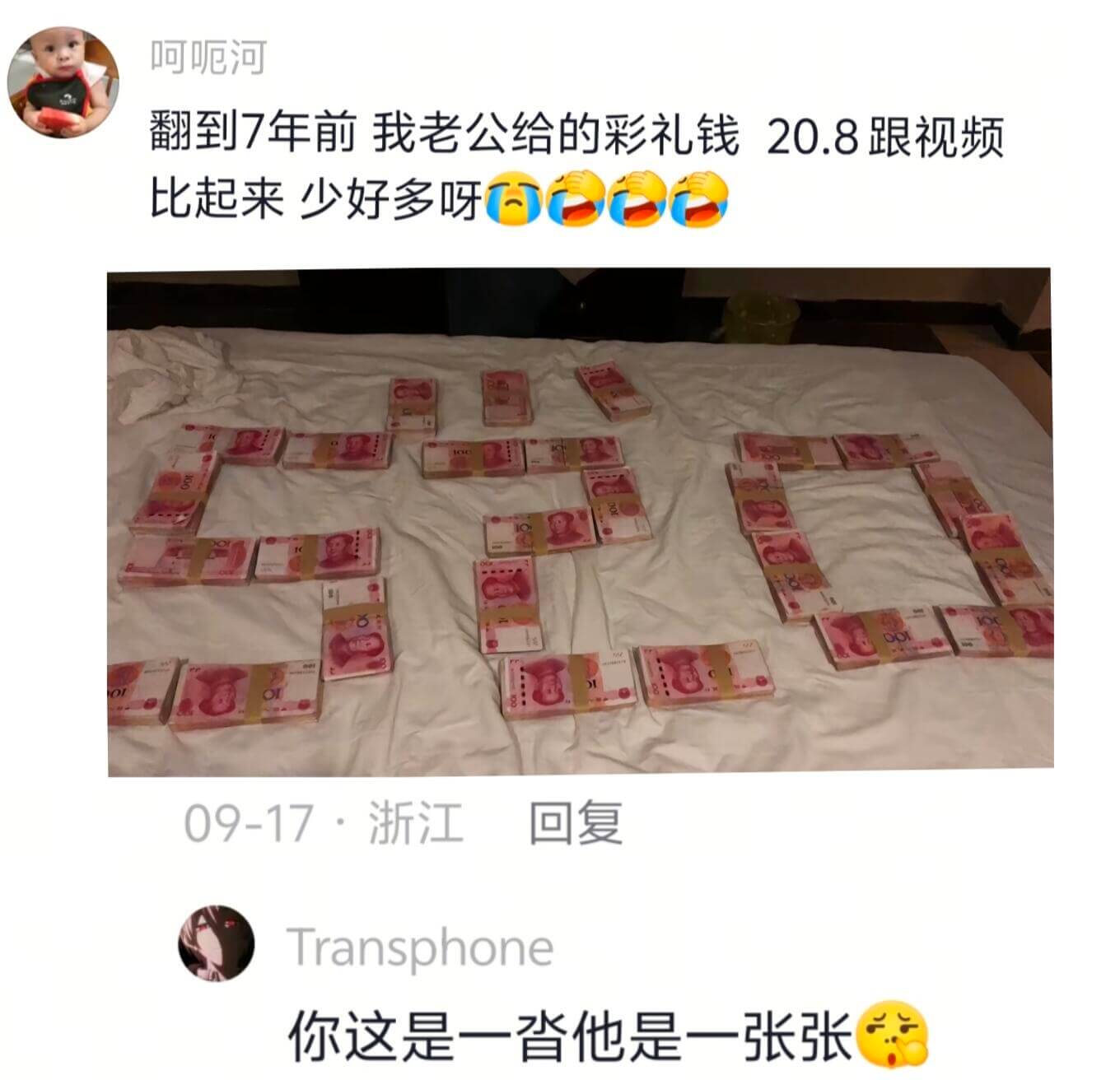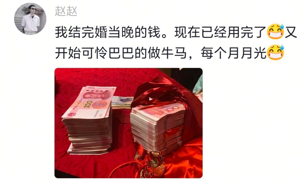 以后就是新夫妻两个人的行情和份子,这很难理解吗