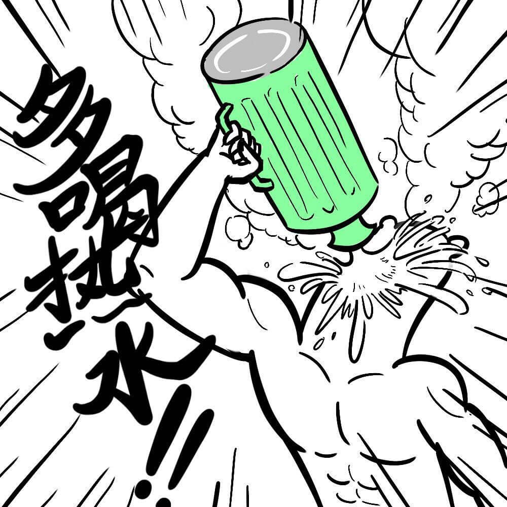 第三张图片显示角色在喝热水,旁边有“多喝热水!!”的文字提示。角色喝水的动作非常夸张,热水似乎直接冲进了喉咙,产生了大量的蒸汽和泡沫。这种夸张的喝水场景让人联想到一个常见的建议“多喝热水”,但在这里被放大到了极致,形成了幽默感。