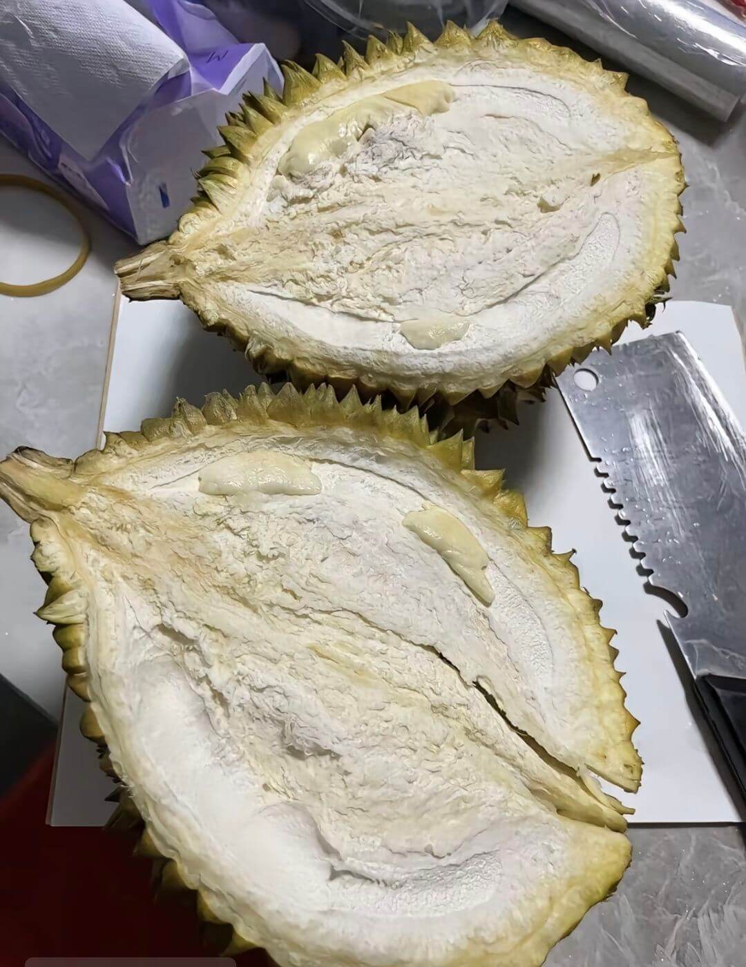 这张图片之所以好笑,是因为它结合了文字描述和视觉对比,制造了一个出人意料的双关语笑话。 首先,文字部分讲述了一个场景:一个人带着两个榴莲过安检,工作人员一直盯着他笑。当被问到为什么笑时,工作人员说:“你的榴莲没有肉。”这句话表面上是在说榴莲里面没有果肉,但实际上“没有肉”在中文里也常被用来调侃某人“没内涵”或“空有其表”,是一种带有戏谑意味的双关语。 接着,第二张图片展示了这两个榴莲的内部——确实几乎没有任何果肉,只有外壳和少量残留的果肉。这证实了工作人员的说法是真实的,但同时也让这个原本可能只是玩笑的话变得非常真实,从而产生了强烈的反差幽默。 更搞笑的是,这种“没有肉”的榴莲看起来像是被“掏空”了,让人联想到一些网络梗中“空心人”或“无脑”的形象,进一步增强了喜剧效果。再加上第一张图中的表情包(一个夸张的、哭笑不得的脸),强化了当事人尴尬又无奈的情绪,使得整个情境更加滑稽。 总之,这个笑话的幽默点在于: 1. 工作人员用一句看似普通的话“没有肉”制造了双关语; 2. 实际情况确实如此,榴莲真的没有肉,让玩笑变成了现实; 3. 视觉上的“空壳”与文字上的“没有肉”形成强烈对比; 4. 表情包和整体情境营造出一种荒诞又无奈的氛围,让人忍俊不禁。