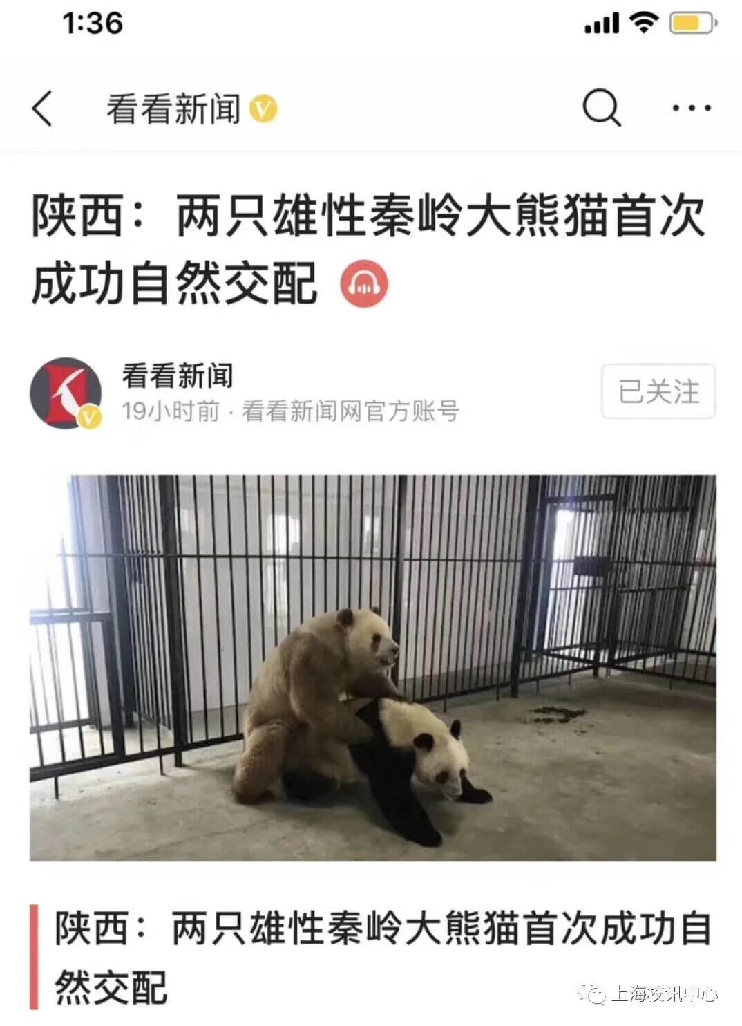 这个新闻是真的,但存在表述歧义——实际是两只雄性大熊猫(二郎和七仔)分别与同一只雌性大熊猫“安安” 成功自然交配,而非两只雄性大熊猫之间交配 。